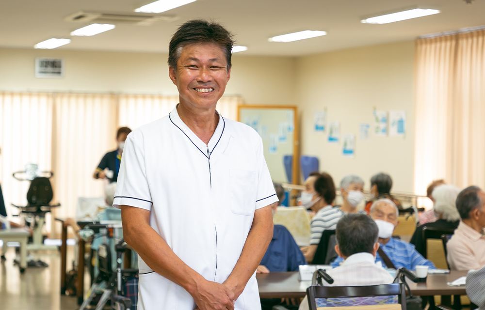 理学療法士として勤務し、リハビリテーション科室長、居宅支援センター長、デイケアセンター長を兼務